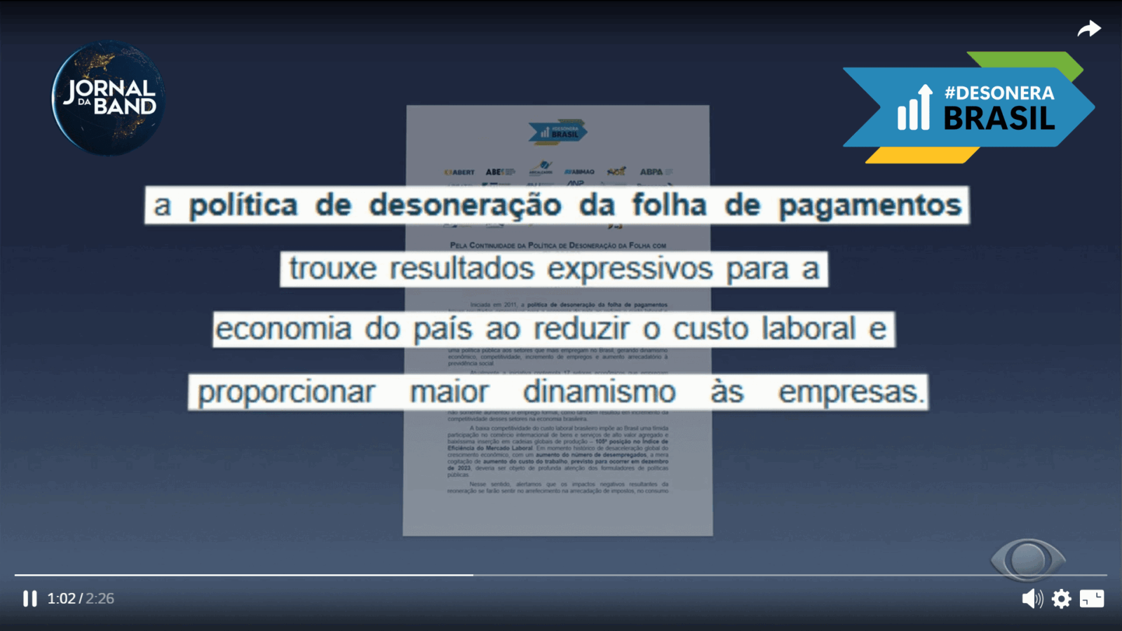 Jornal da Band – Desoneração da folha de pagamento